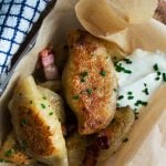 Perogies, or pierogi, are a delicious combination of potato, bacon, onion and cheddar. Boiled and fried.